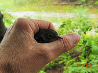 One wing is spread open as it covers most of the bird. As I pick it up, its heart beats rapidly and delicately against my palm.