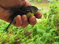 I coo, “Are you okay?” No answer—what did I expect? Around me a dozen or more ‘yellow’ birds hover and flit from branch to branch. “Your friend flew into my window. I’m so sorry.”