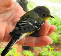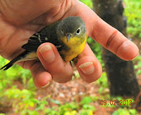 Inside, Charlie naps as I Google ‘yellow breast’ + ‘birds’. There it is! A pine warbler! And it is female! I knew it. That’s my Felicia!